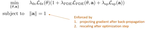 - Minimizing \(\mathcal{L}_{PDE} (\theta,a)\) in terms of \(\theta\) enforces that the ANN is a solution to the PDE being learned.